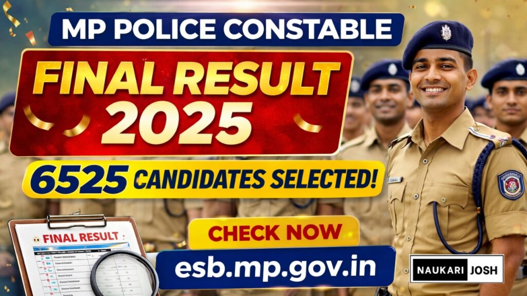 MP Police Constable Final Result 2025 Out : The Madhya Pradesh Employees Selection Board (MPESB) has officially announced the final result for the MP Police Constable Recruitment Examination 2025. With this announcement, the long recruitment process has now reached its final stage, bringing relief and excitement to thousands of candidates who had been eagerly waiting.