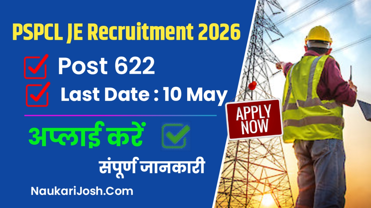 PSPCL JE Recruitment 2026: Punjab State Power Corporation Limited (PSPCL) has released a fresh recruitment notification for 622 Junior Engineer (JE) vacancies. Candidates who meet the eligibility criteria can submit their applications through the official website pspcl.in. The last date to apply online is May 10, 2026.